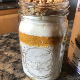 To make: Dump jar, add (1) to (1 1/4 ) cup of water. Mix well and let sit for a few minutes to rehydrate while you grease the pan. If you need to add just a little more water to make it the right consistency add just a little at a time.